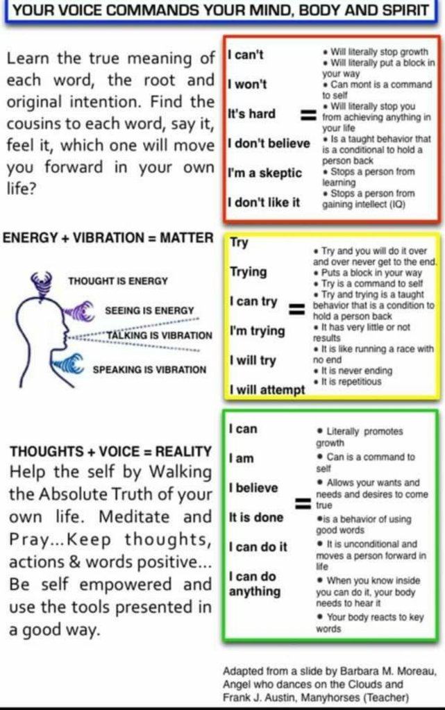 How do you speak to yourself or others? How do you speak about things or situations? How can you shift your intentions? What are your thoughts, speech, and actions surrounding what you are choosing to experience? Are you creating more of the same? Does your mental or emotional body need some attention?